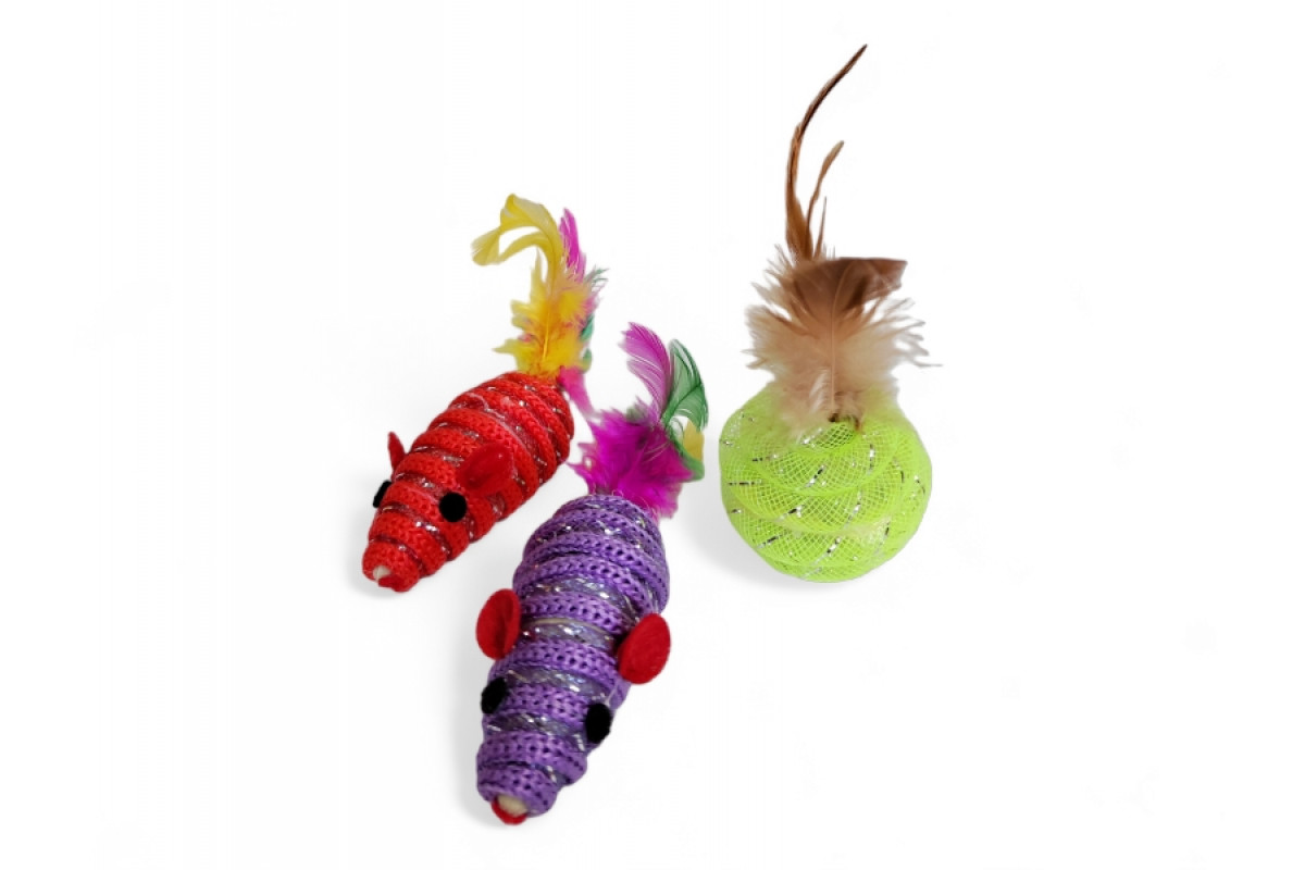 Разноцветные мышки и мячики с блестками, с перьями, 5см, (41363)