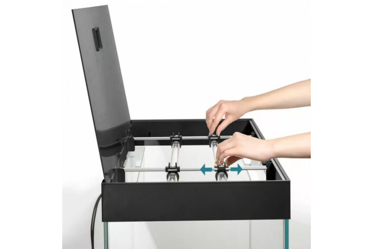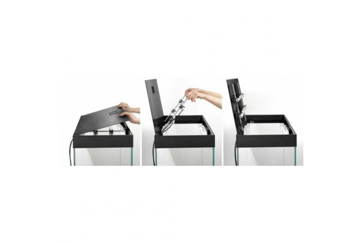 Acvariul este realizat din sticlă optică specială (față și lateral). Marginile acvariului sunt lustruite, iar juncțiunile sunt incolore, ceea ce conferă o transparență sporită. Adițional, setul include un sistem de iluminat LEDDY TUBE DAY & NIGHT, care oferă un consum econom de energie datorită tehnologiei moderne cu LED-uri, aspect admirabil și trei moduri de iluminat (zi, zori și noapte). Sistemul de iluminat poate fi extins pînă la 9 module cu LEDDY TUBE. De asemenea, accesul în interiorul acvariului este liber și foarte convenabil, iar capacul este prevăzut cu sistema Smart Open. Absența întăririlor transversale facilitează foarte mult utilizarea acestor dispozitive. În partea din spate a capacului există orificii pentru fixarea furtunurilor și cablurilor, datorită acestui fapt ele nu sunt vizibile la prima vedere și nu au un efect negativ asupra aspectului acvariului.