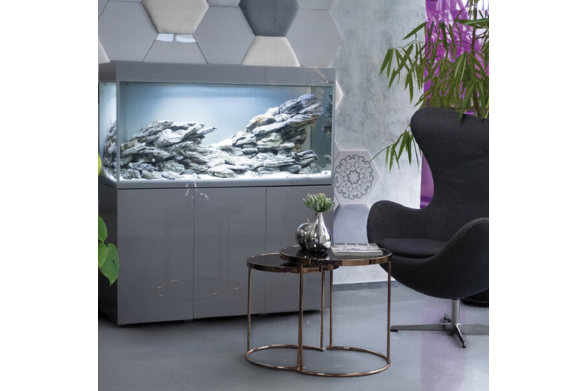 Лаконичный аквариум GLOSSY DAY&NIGHT в сером цвете вписывается в любой современный интерьер.