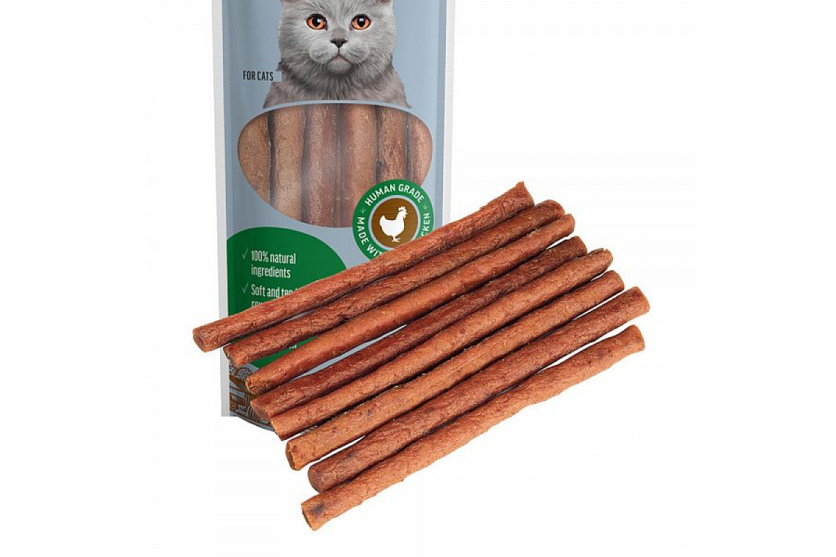 Лакомство для кошек – мясные палочки из курицы.