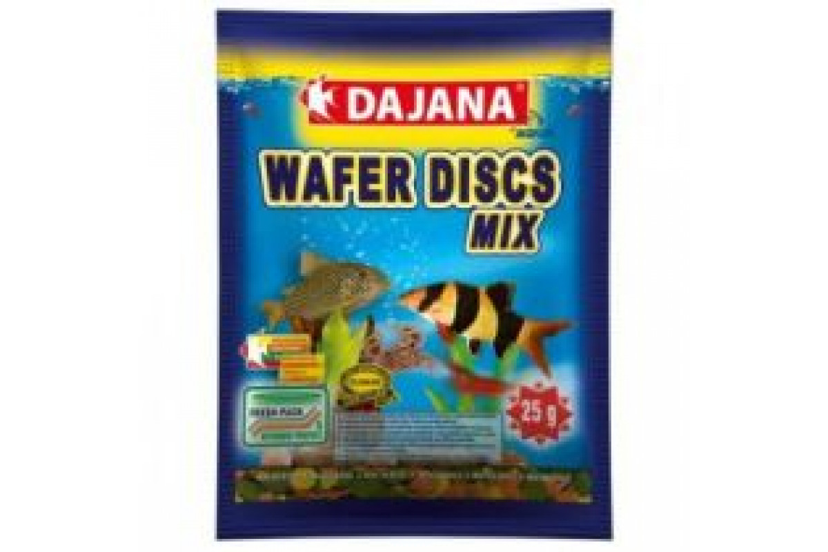 Dajana Wafer Discs mix — полноценный корм в виде погружных дисков для всех декоративных рыб и ракообразных, обитающих на дне аквариума. Несколько видов специальных дисков содержат водоросли, астаксантин, каротины и объёмный спектр первоклассных сырьевых веществ с оптимальной уравновешенной формулой, которая содержит в себе все нужные субстанции, в частности, растительные и животные белки, витамины и минералы, включая естественный усилитель иммунной системы бета-глюканат. Содержит витамины: D3, A, E, C.