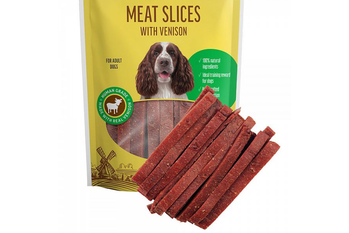 Лакомство для средних и крупных пород собак – ломтики из мяса оленя.