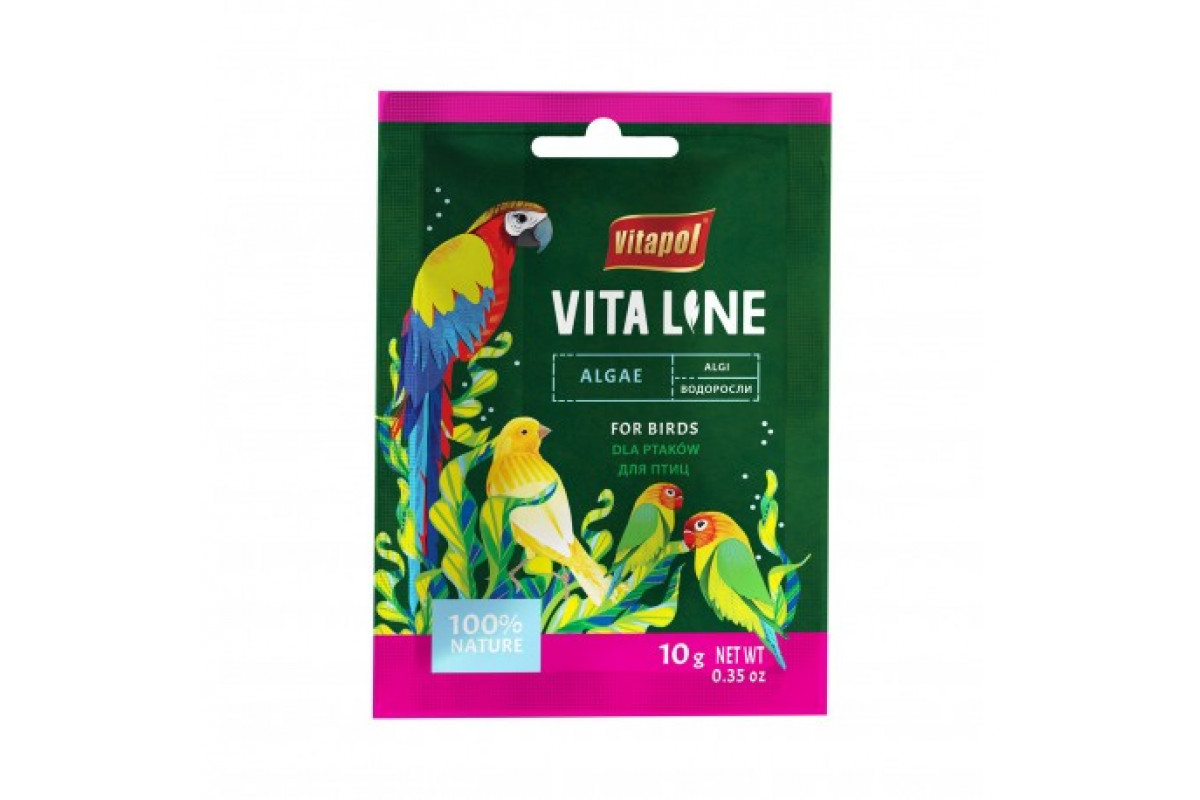 Морские водоросли являются ценным источником высоко усваиваемого белка, богатого витамином B12 и другими витамины в высоких концентрациях, такие как: A, B, B1, B2, D, E, K. также богаты многими соединениями минеральные, микроэлементы и легко усваиваемые железо, калий и селен. Содержит значительные количество макро-и микроэлементов, ферментов, жирных кислот, хлорофилла и фитоцианина. Птицы склонные к гипотиреозу должны иметь профилактически поставляемый йод с пищей не менее 1 раза в неделю. Для больных птиц йод должен быть в ежедневном диета.