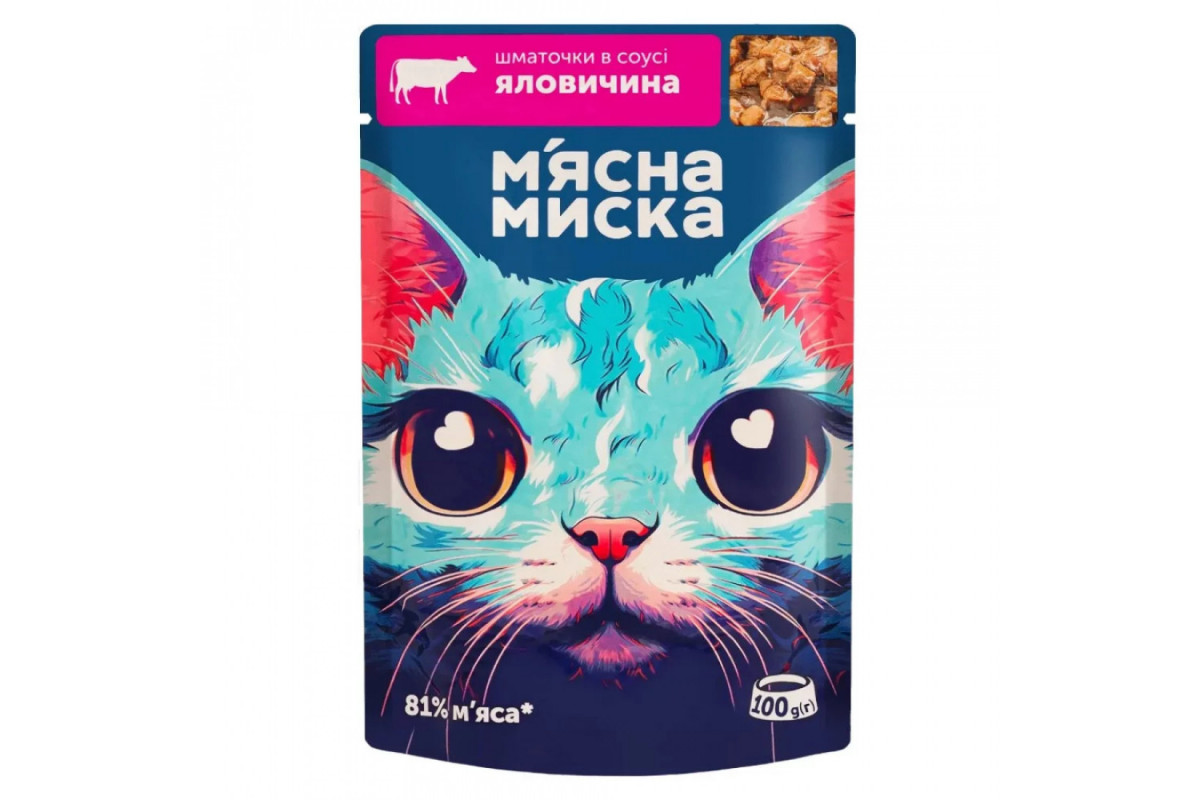 Влажный корм для кошек Мясная Миска кусочки в соусе с говядиной (100 г)