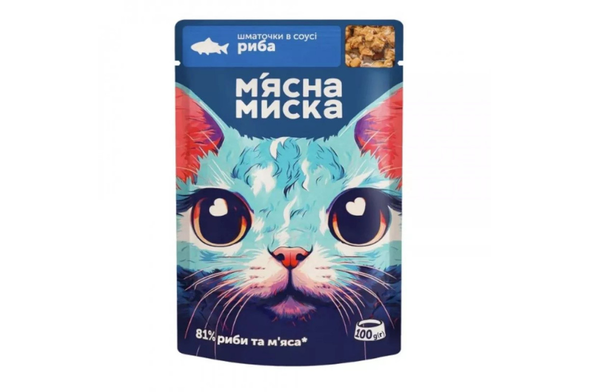 Влажный корм для кошек Мясная Миска кусочки в соусе с рыбой (100 г)