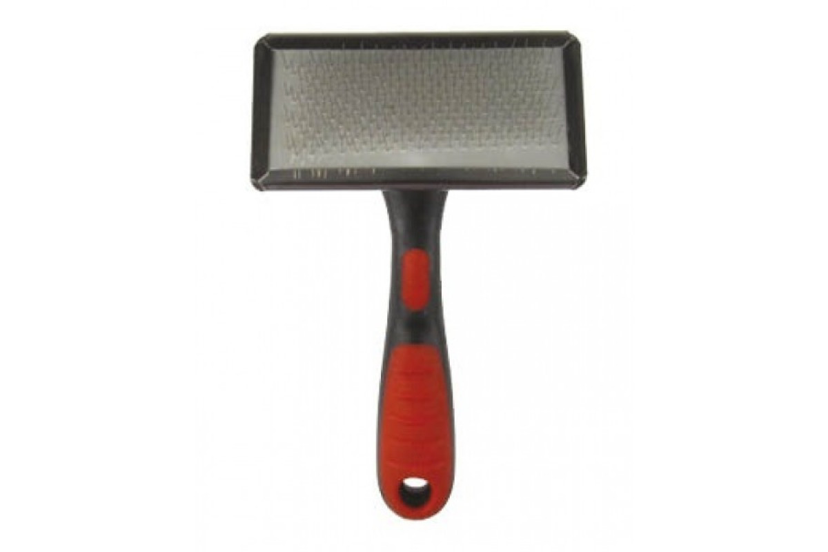 Практичная щетка с прочной ручкой для ежедневной чистки. Он удаляет мертвые волосы и делает шерсть мягкой и блестящей. При этом он обеспечит питомцу приятный легкий массаж.