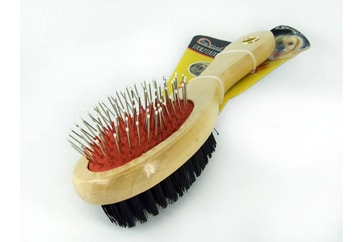 Щетка - пуходерка для собак, двусторонняя с деревянной ручкой, (43101)