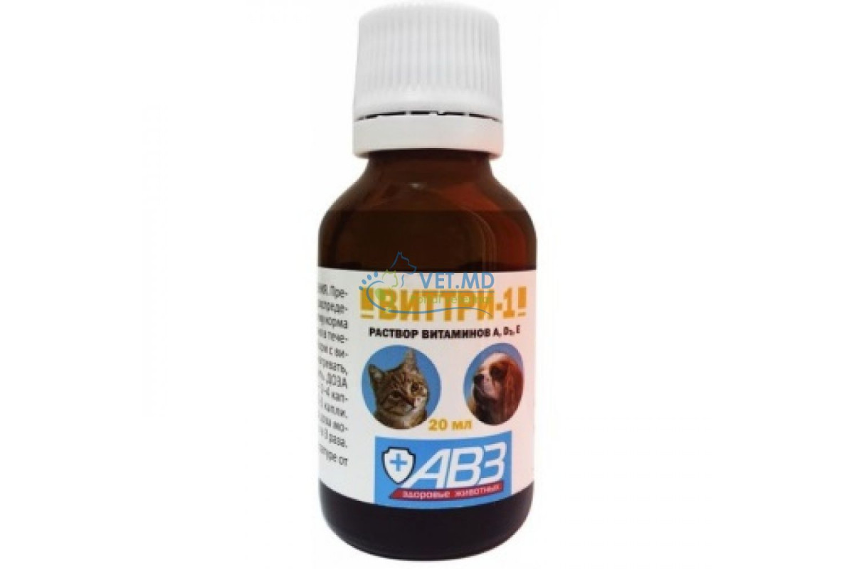 Виттри-1 раствор для орального применения содержит (в 1 мл) витамин А – 15 000 МЕ, витамин D3 – 20 000 МЕ, витамин Е – 10 мг, а также вспомогательное вещество – растительное масло.