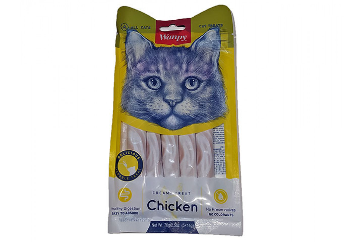WANPY Кремовое лакомство с курицей, для кошек, 70г, 5шт, (40020)